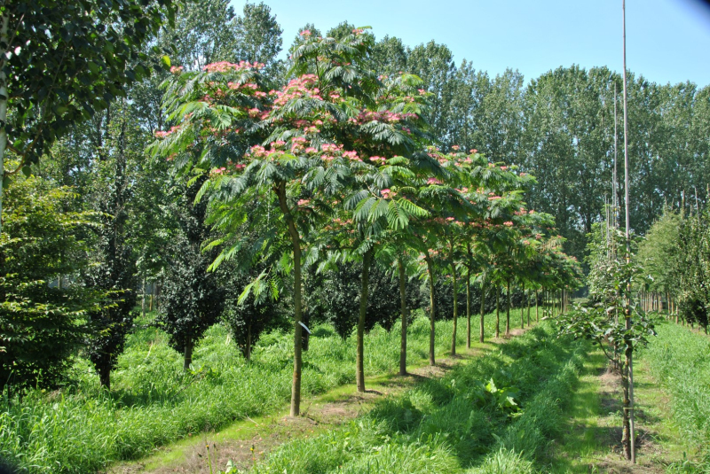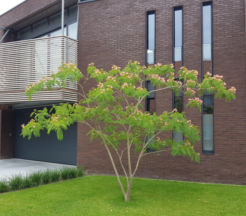 Velmi jemné kapradinové listy jsou hlavní doménou tohoto stromu připomínajícího žížalu. Listy se na noc a za deště zavírají. Tmavě růžové květy s dlouhými tyčinkami rozkvétají koncem léta. Vyberte středně bohatou půdu s dostatečnou propustností. Albizie má ráda slunné, teplé a chráněné stanoviště. Nikdy nesmí stát delší dobu ve vodě. V zimě potřebuje být dobře zastíněná.