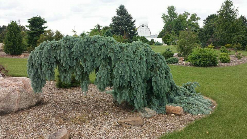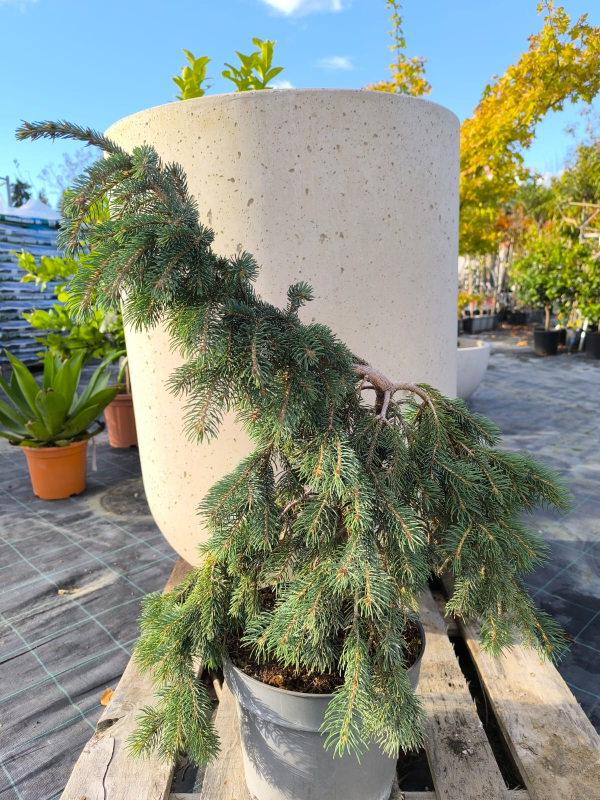 Světlé, stříbřitě modré jehlice nesené na kaskádovitých větvích dodávají tomuto plačícímu stromu půvabný vzhled a krásnou barvu. Mladé rostliny lze ponechat volně rozložené a vytvořit tak divokou, téměř půdopokryvnou rostlinu.