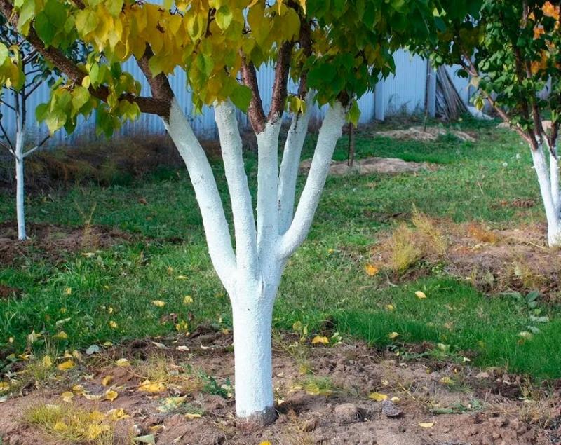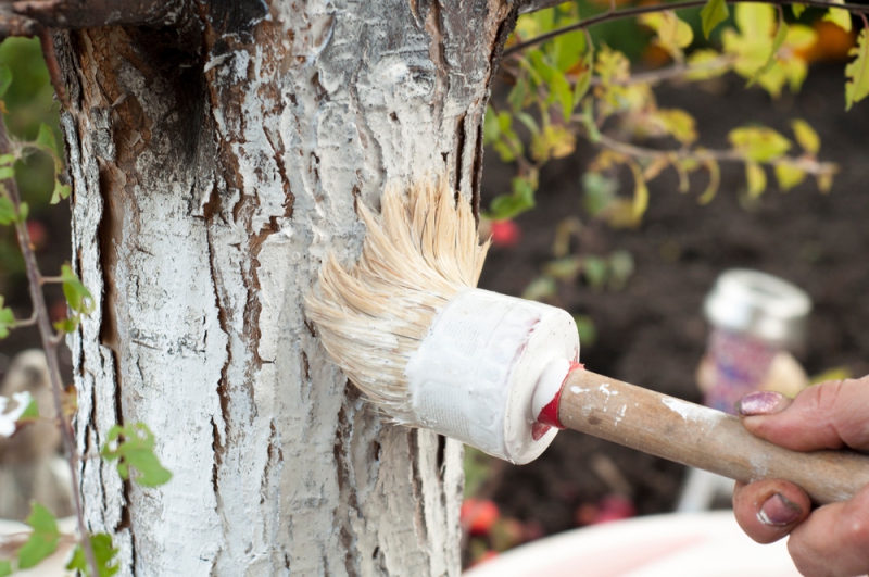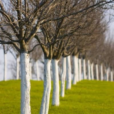 Odstraňte nesoudržné části kůry z kmene, naneste barvu štětcem nebo válečkem. Natřete celý kmen stromu až po spodní větve. Na suchý kmen naneste rovnoměrné množství barvy. K práci používejte čisté nářadí.