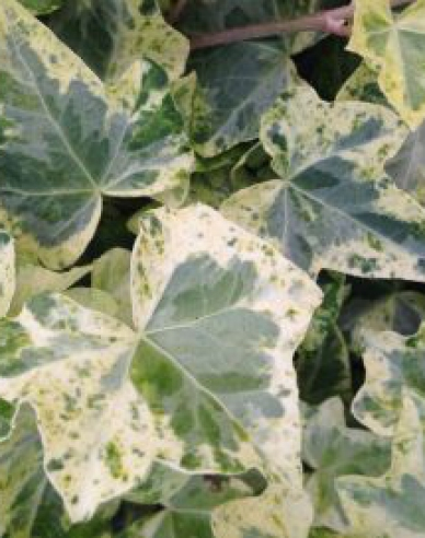 Břečťan MARMORATA se vyznačuje trojlaločnými, drobnými zelenými listy s bílými ozdobnými skvrnami.