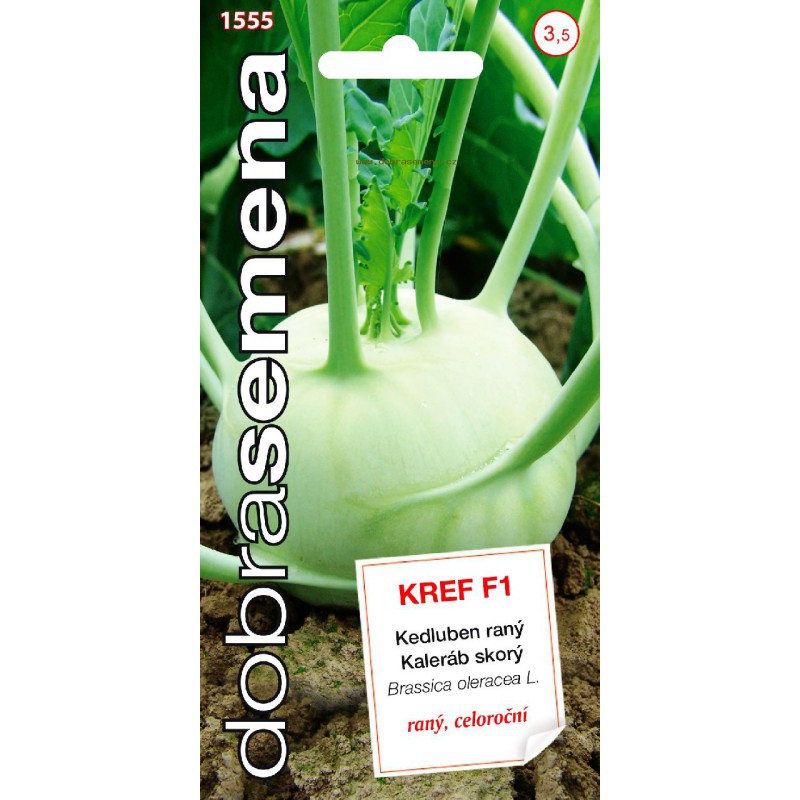 KREF F1 - velmi raná hybridní kedlubna pro rychlení i celoroční polní pěstování. Hlíza je ploše kulovitá, s jemnou a chutnou vnitřní dužninou. Je odolná proti praskání, mačkání a zarůstání. Doba růstu od výsevu je 75-80 dní, doporučená spon 25 x 25 cm.