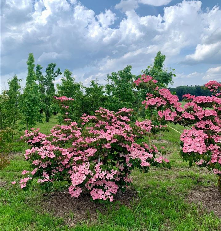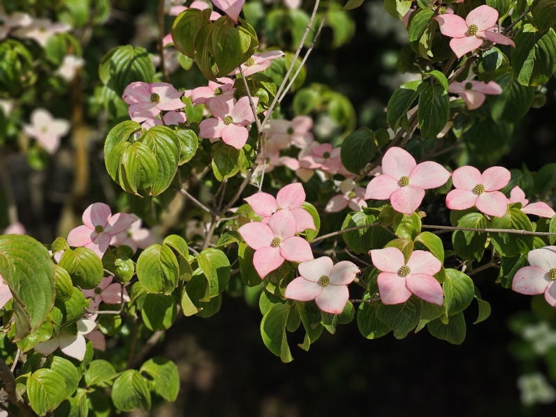 Jedná se o kultivar dřínu Satomi,který má tmavě růžově zbarvené květy.