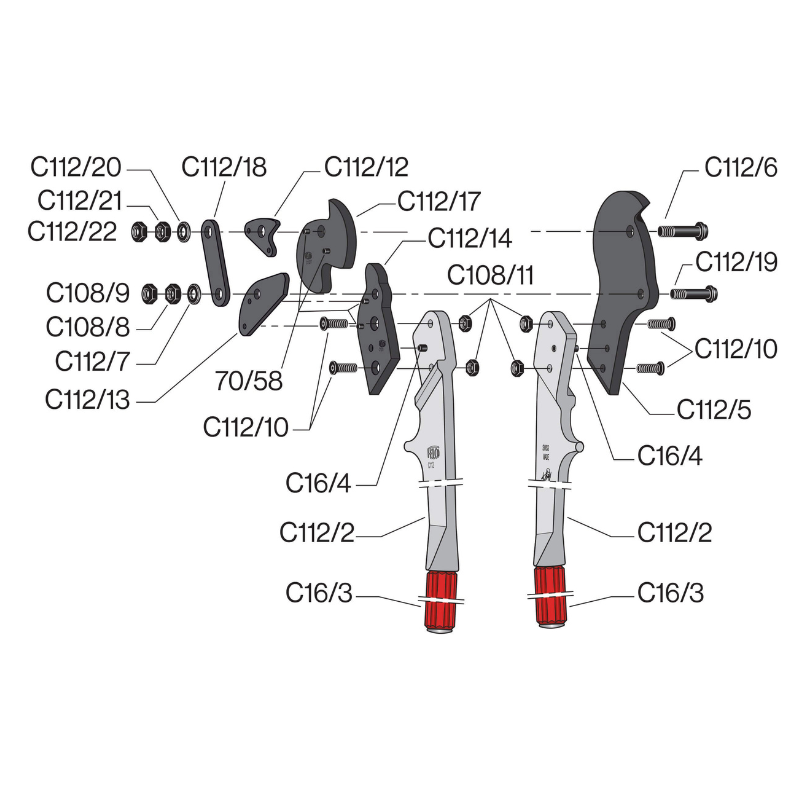 Kleště FELCO C112 pro stříhání velmi tvrdých materiálů, drátů a ocelových lan do průměru 12,7 mm. Jsou vybaveny systémem přenosu síly, který umožňuje zvýšit sílu vyvíjenou uživatelem. Tyto nůžky jsou určeny především pro ropný, lesnický, energetický, dopravní a telekomunikační průmysl.