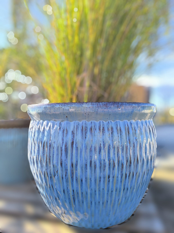 Elegantní keramický květináč s moderním strukturovaným povrchem v jemném modrém tónu vnese do vašeho interiéru i exteriéru styl a nadčasový design. Je ideální pro výsadbu okrasných travin, květin nebo menších keřů.