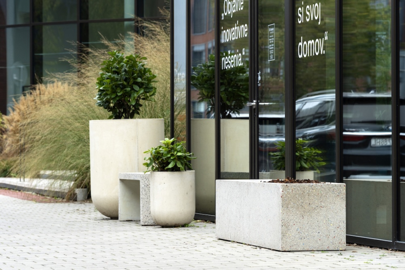 Moderní květináč Terratico je vyroben inovativní technologií, která kombinuje recyklovaný plastový odpad s betonem.