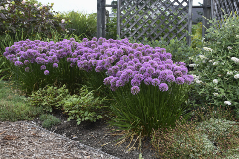 Allium millenium - okrasný česnek o výšce 35 cm kvetoucí v létě.