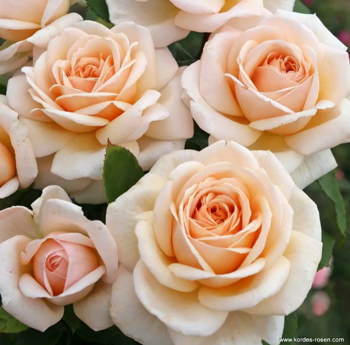 Dobře rostoucí čajová růže s velkými a elegantními květy, které vyzařují jemnou vůni v kombinaci s nádhernou pastelovou meruňkovou barvou.