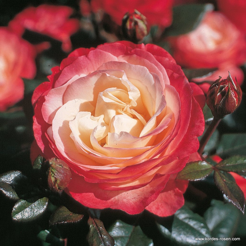 Nostalgie je dvoubarevná hybridní čajová růže, která vyniká svou vůní a lze ji použít k řezu... Hru barev květu podtrhují tmavě zelené listy.