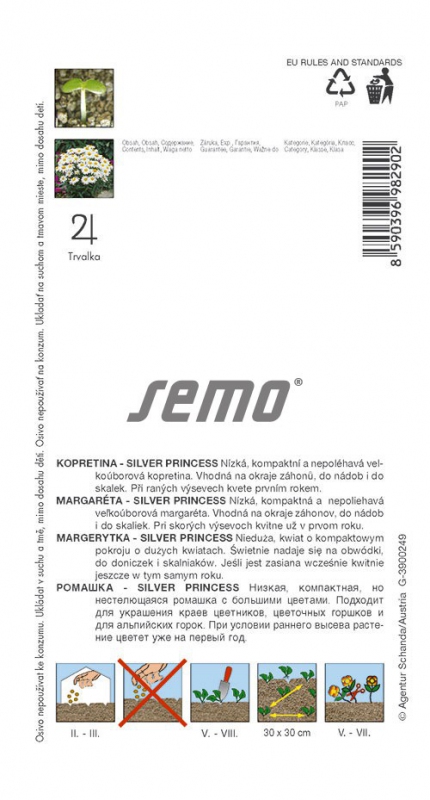 Výrobce: SemoBujně kvetoucí trvalka vhodná na okraje záhonů, do nádob a skalek. Vyžaduje propustnou půdu a slunné stanoviště. V prvním roce je třeba rostliny chránit před mrazem. Nízká, kompaktní a nestresující velkoplodá trvalka. Výška 35 cm. Vhodná na okraje záhonů, do nádob a na skalky.