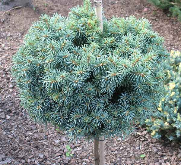 Pomalu rostoucí smrk, zajímavý svým modře zbarveným jehličím.