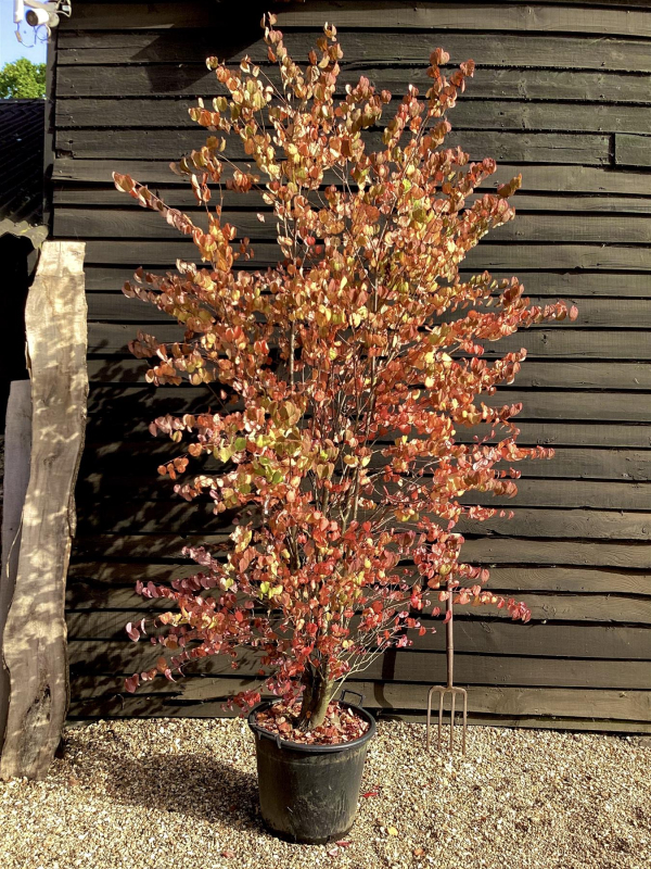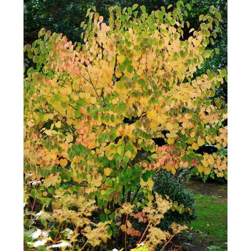 Cercidium má středně velké, 10-11 cm dlouhé, mírně stočené, srdčité, středně zelené listy, které se na podzim, zejména na silně kyselých půdách, zbarvují do fantastických oranžových a šarlatových odstínů. Jeho opadané listy vydávají omamnou vůni cukrové vaty.